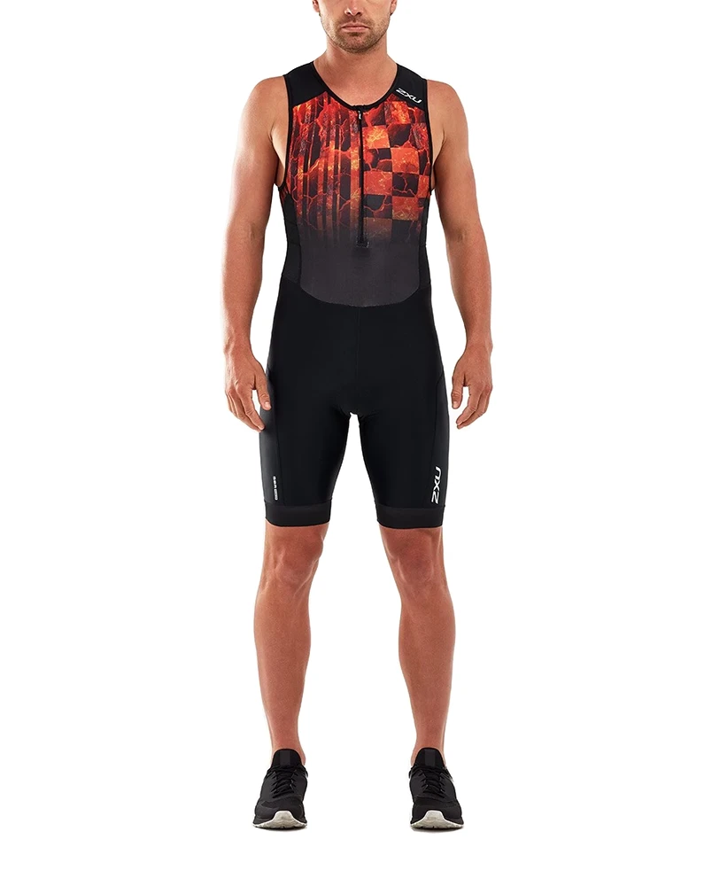 Re-engineered in accordance with RMIT University’s latest research, the 2XU Perform Front Zip Trisuit in Black and Flame Ombre delivers the advanced cooling and ventilation technologies required to conquer the rigors of triathlon.