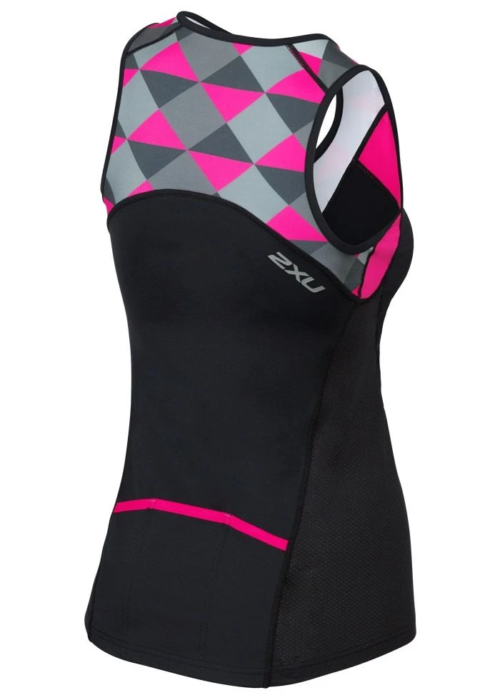 This 2XU tri singlet has SENSOR MESH panels the ultimate in moisture management. With LYCRA® fibre from INVISTA, unparalleled comfort is assured.