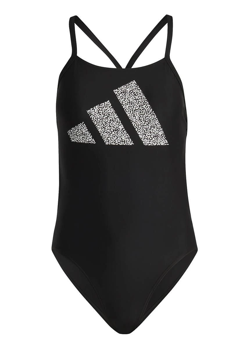 Adidas 3 Bar Logo Print Swimsuit – Black/White
