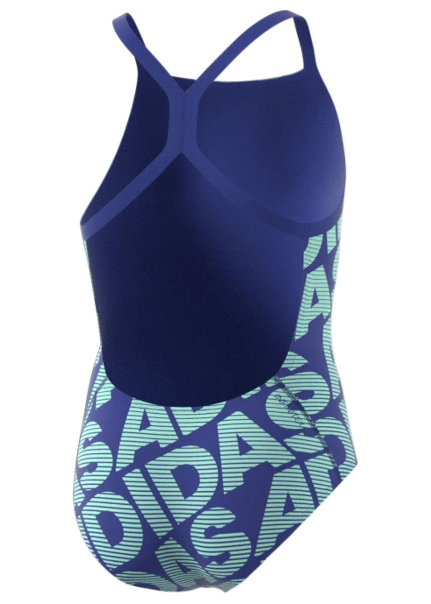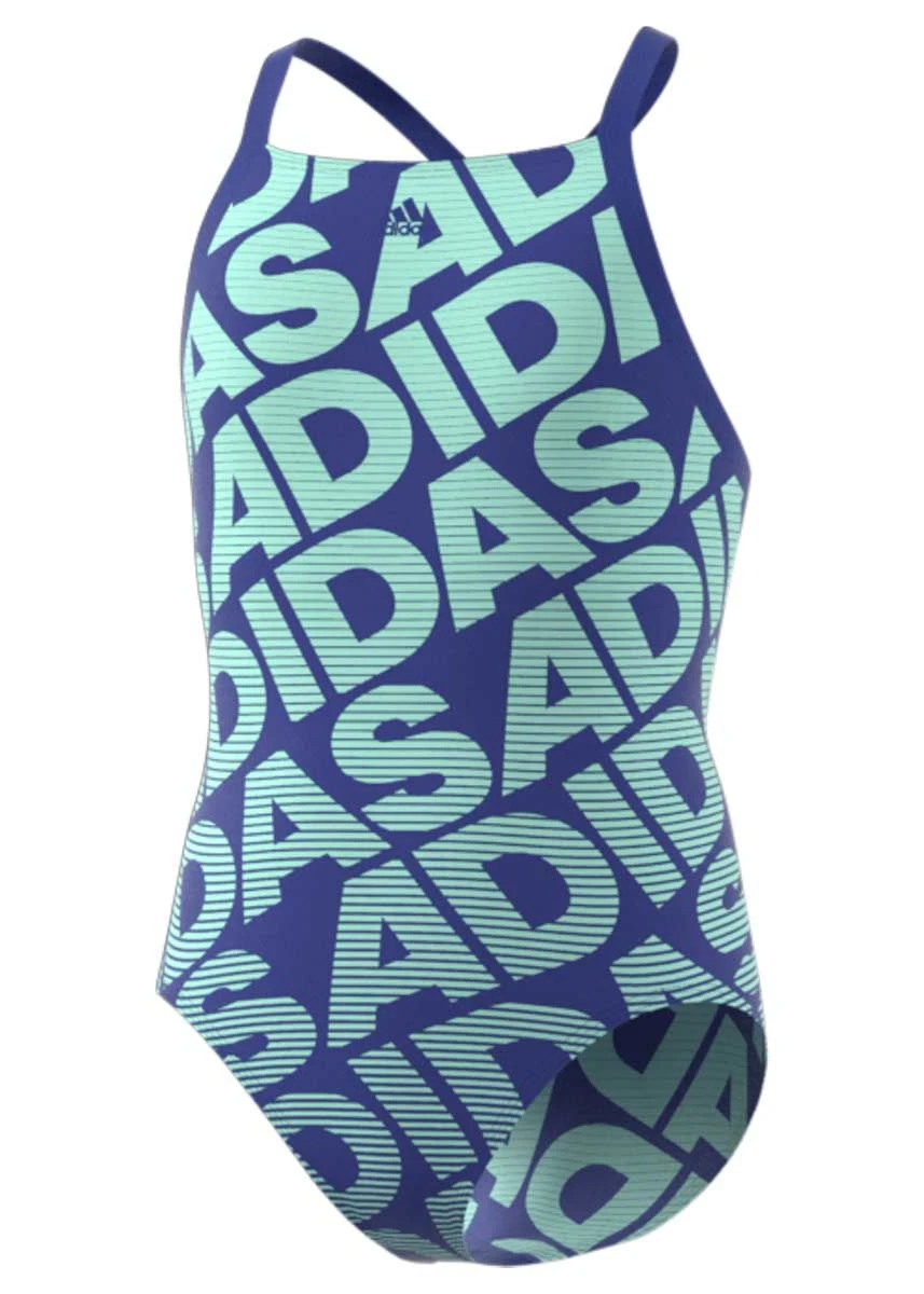 The Junior Girl’s Adidas Allover print swimsuit is perfect for those intensive training session. The allover Adidas wordmark graphic print swimsuit is built for high-intensity training, being made from chlorine-resistant fabric. The performance-cut suit has a medium and an X-back with wide opening for freedom of movement and less drag, making is easier for you to hit your hardest in the most intense training session.Â