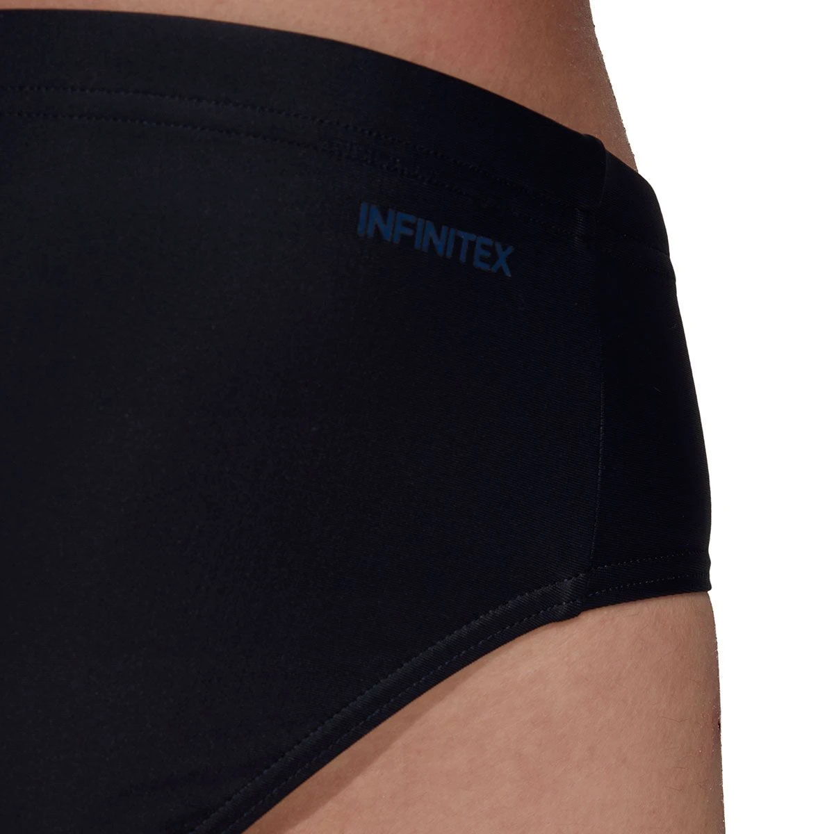 The Adidas Mens Badge streamlined swim trunks are designed for everyday lap swimming.