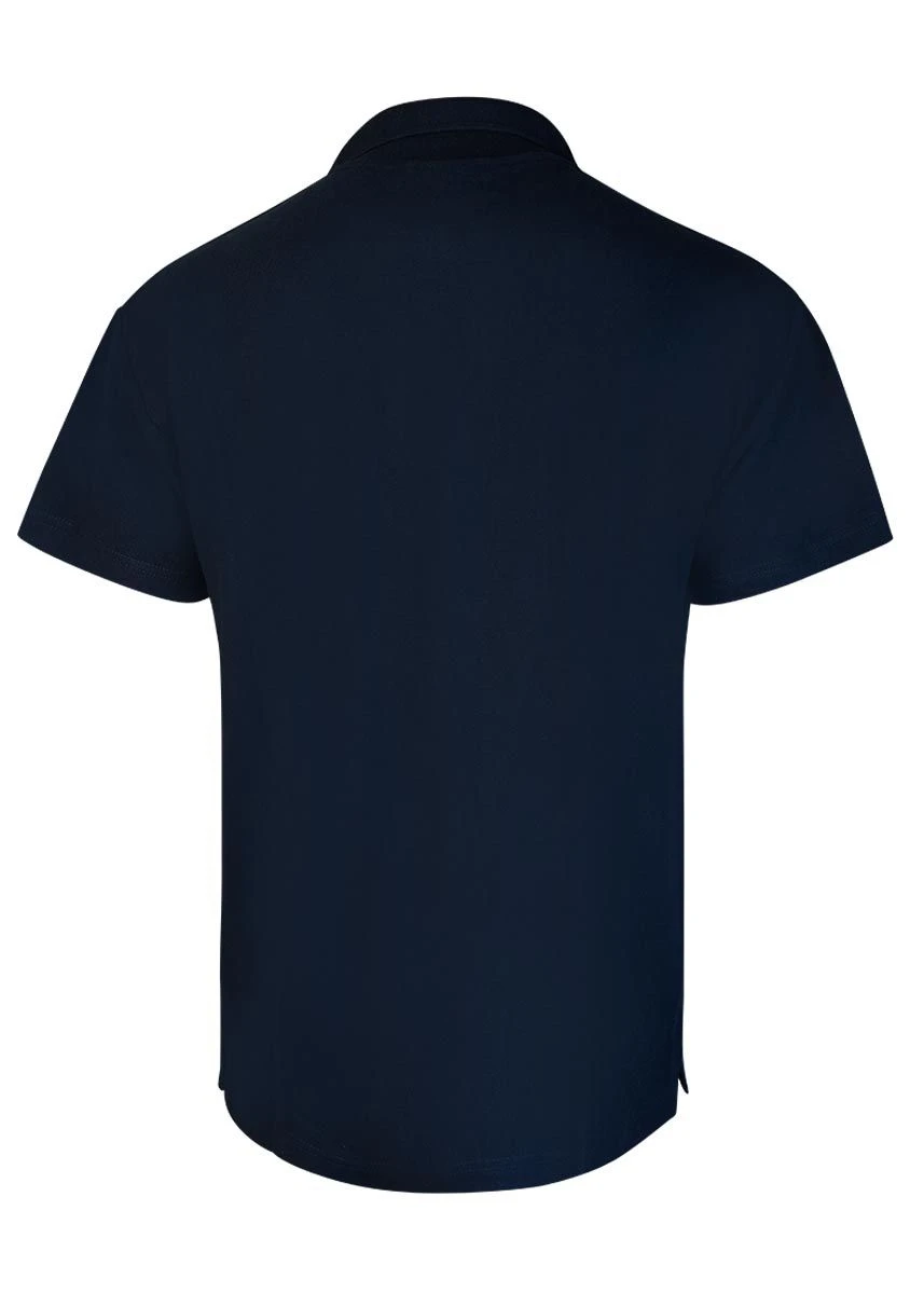 This Polo shirt has 3 buttons and a tubular construction which eliminates the appearance of side seams.