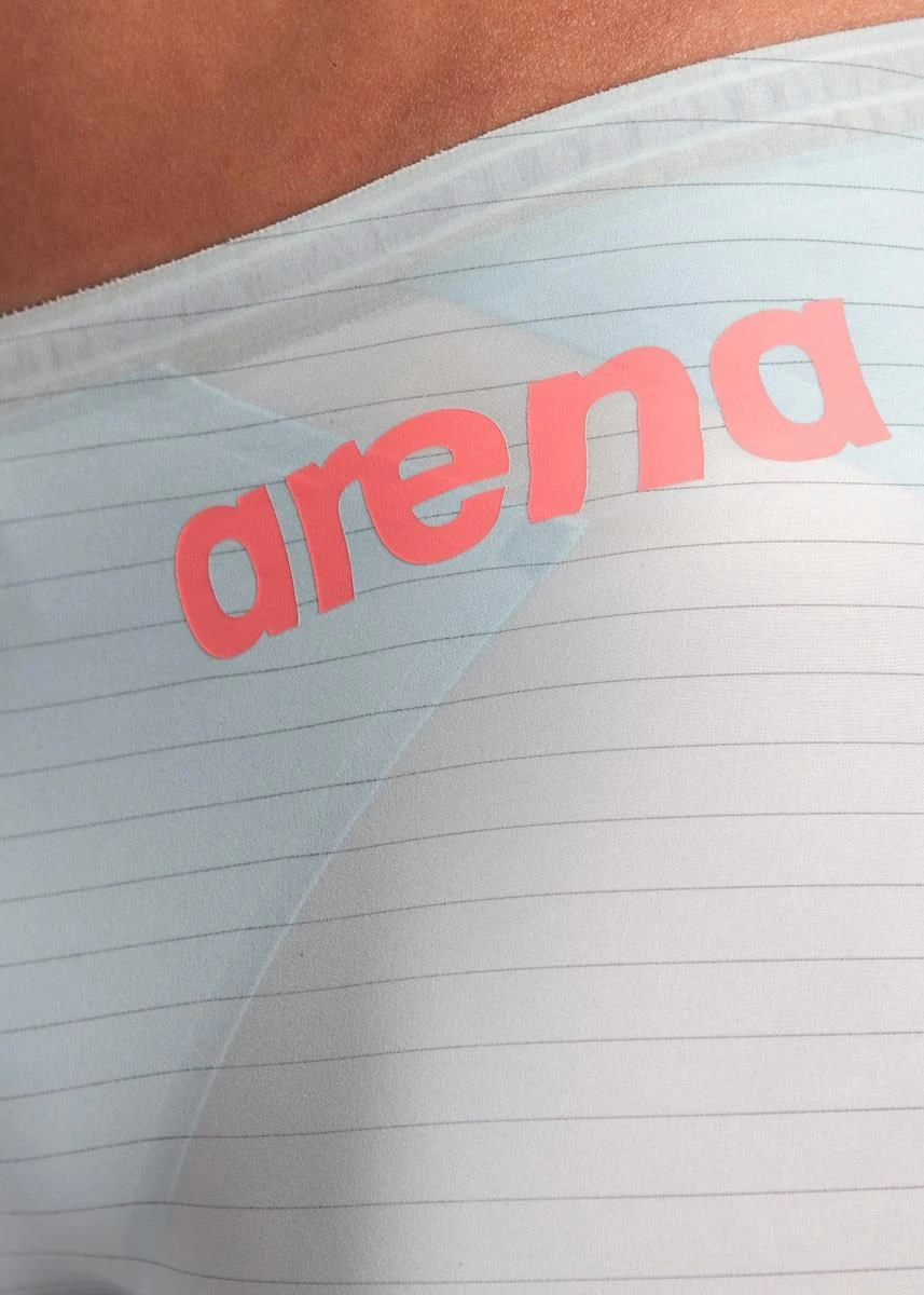 This Arena tech suit is made from a single cut of fabric with one bonded seam up the back for reduced water absorption. The minimal 3-piece lining offers maximum flexibility as you swim, kick and turn. Horizontal bands of powerful, lightweight carbon fibre comfortably compress overextended areas of the body for optimal performance.