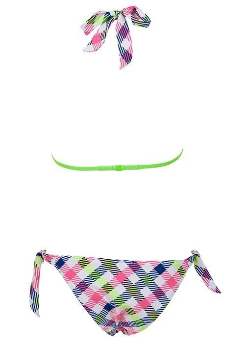 Adjustable neck straps that tie at the back and side ties on briefs ensure that this swim bikini fits you perfectly.