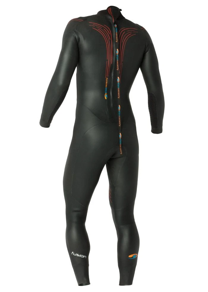 - Buoyancy+ – The Fusion is constructed with a buoyant 5mm panel in the lower half of the suit while the upper body features a 3mm panel. This design lifts the lower half of the body in the water improving body position, creating less drag increasing speed.