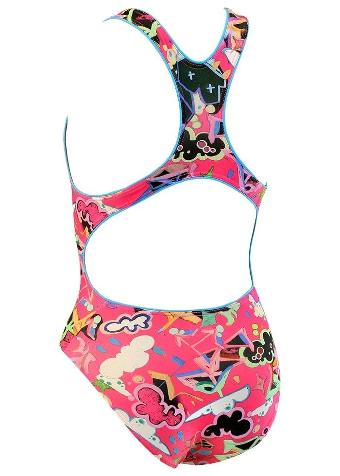 Your daughter will love swimming in the girl’s scribble swimsuit by Maru which features a bright and colourful graffiti print perfect for any creative mind. Excellent for swim training, fitness and leisure use the scribble swimsuit’s 100% polyester fabric boasts extra chlorine resistance to ensure longevity.