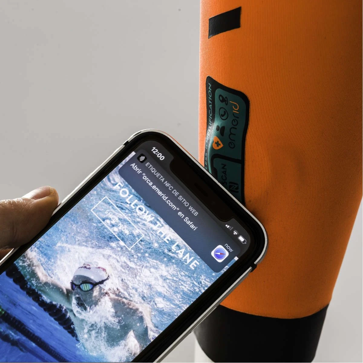 Smart Openwater wetsuit with built-in technology that will increase the level of safety for swimmers at sea Emerid, Universal identification system using NFC/Contactless technology that instantly provides the athlete’s information in the event of an accident or emergency.