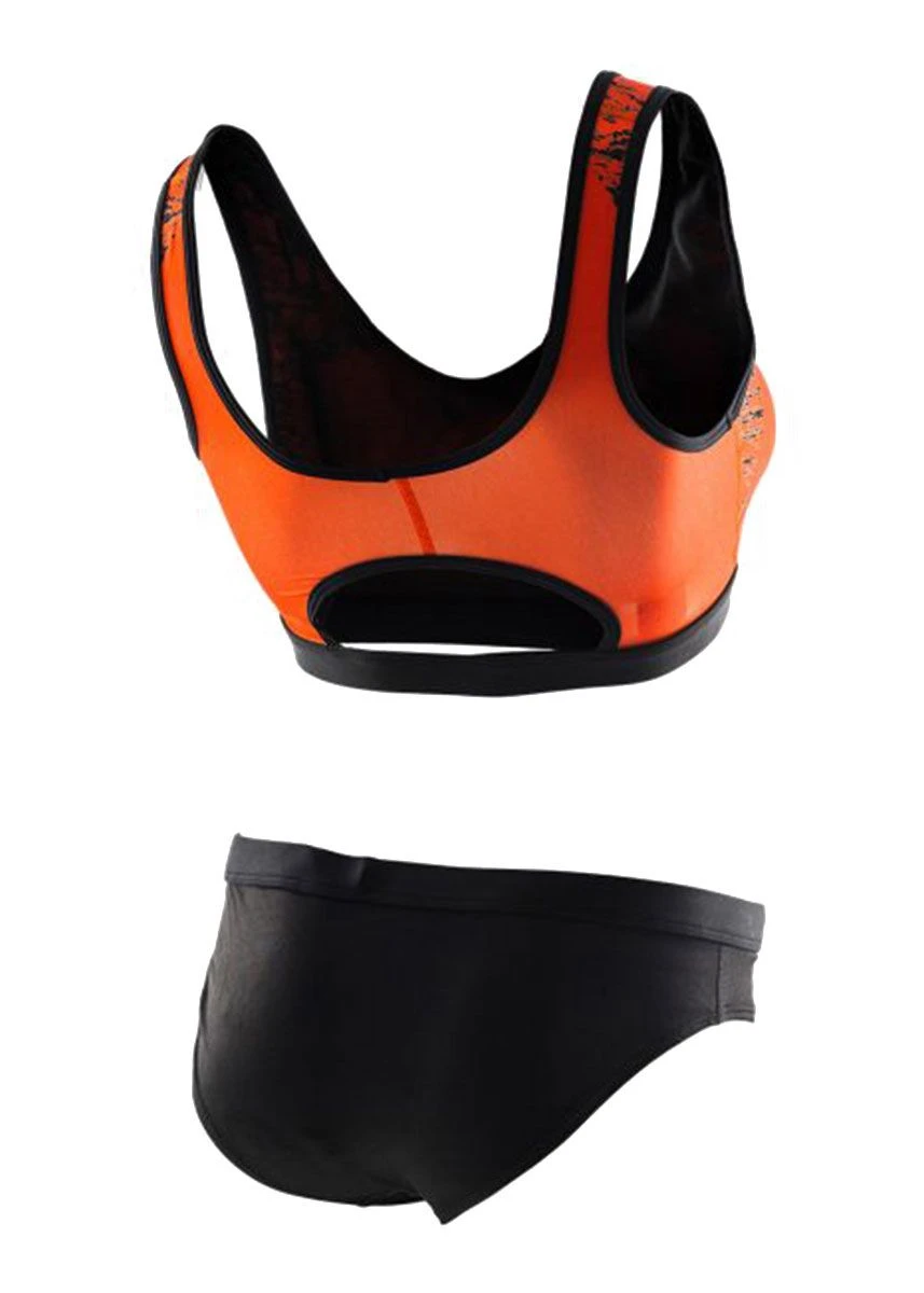 The Orca two piece swim bikini in orange is the perfect solution for swimmers who prefer two piece suits, without compromising comfort and performance in the water. The high-performance Italian Speedline PBT fabric is lightweight, breathable and dries easily. It is resistant to chlorine and UV rays which allows the swim bikini to last longer over time.