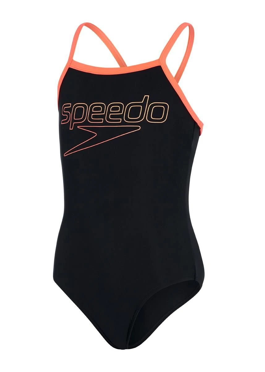 Speedo’s Thinstrap Muscleback swimsuit is a great choice for lessons and training. Sleek in black with contrasting red and orange, the muscleback style includes thin, supportive straps for total flexibility. Made from Speedos iconic soft and stretchy Endurance10 fabric, it provides higher chlorine resistance than standard swimwear while fitting like new for longer with Creora HighClo.