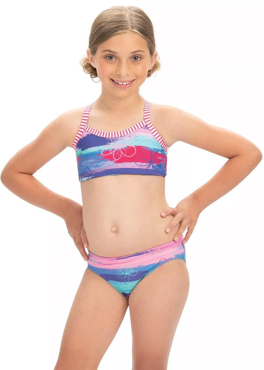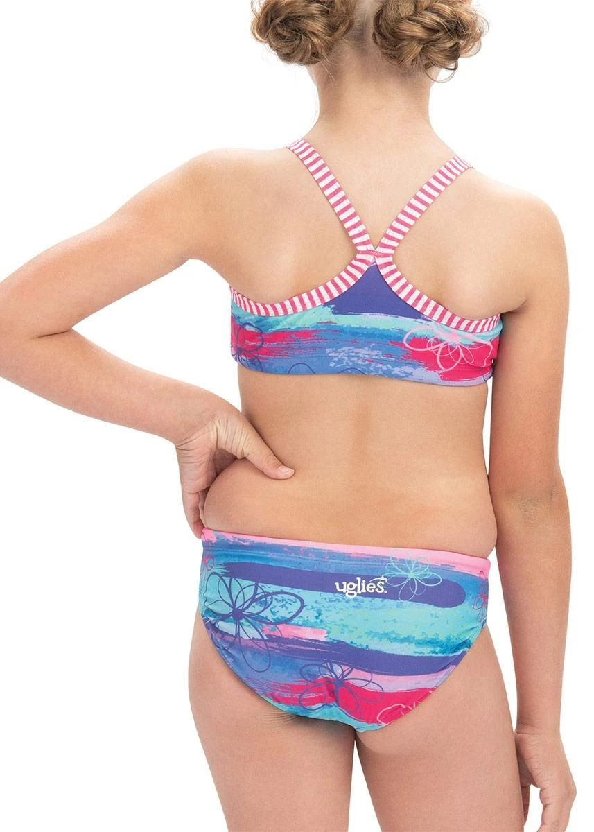 The girl’s Uglies Surfs Up print 2-piece Swim bikini is the perfect choice for young swimmers looking for a new, durable swimsuit to take to the pool or beach. Young swimmers will love this junior swimsuit’s cheerful floral mix print with signature candy stripe binding.