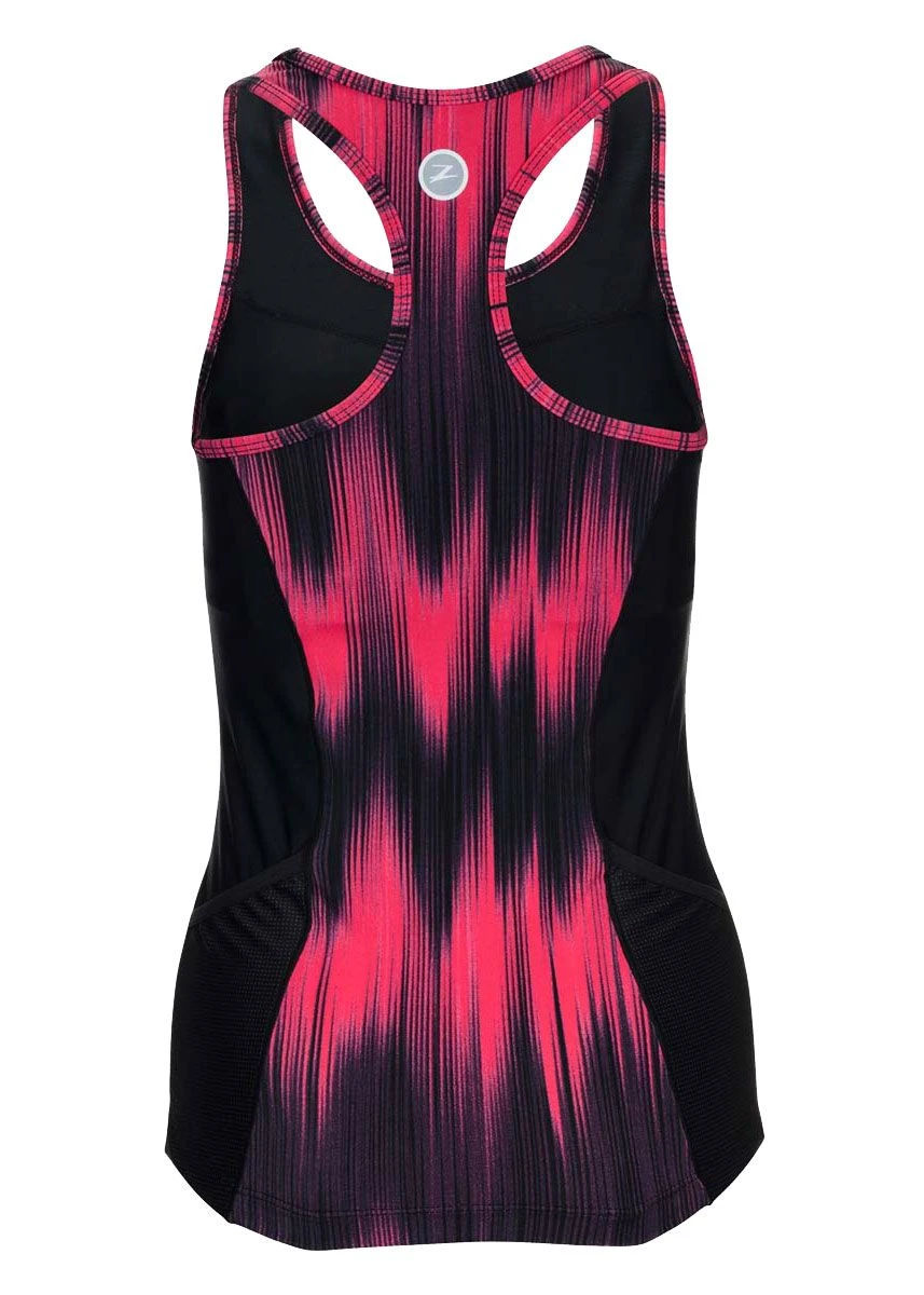 The Zoot Women’s Performance Tri Racerback Top with a good vibes design offers a full range of motion while also creating a comfortable fit.